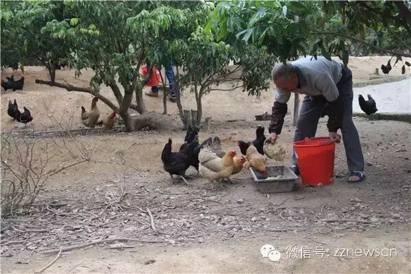 吴庆斌的爷爷拎着鸡食,冲着山上一吹,树枝上、草丛中、屋顶上,这些散养的鸡,纷纷“飞奔”过来,低头啄食。吴庆斌介绍说,这些鸡每天喂食两顿,其余的时间就是散养在山里自主觅食,野性十足,除了人工喂养之外,它们还会啄啄土、啄啄树,由于诏安是“富硒之乡”,无论土壤、水源、植物都含有丰富的硒元素,这也促使这些鸡们长势良好,鸡蛋鲜美。