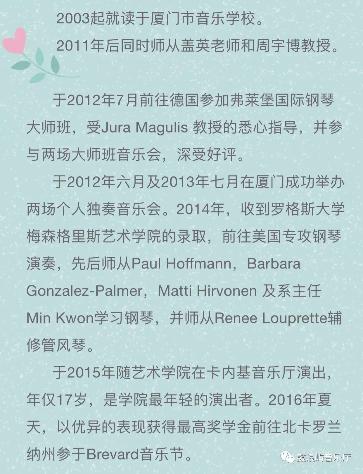 8月3日晚19:30《厦门市音乐学校“夏之梦”系列——“游子心声”音校校友音乐会》(观众免费入场)