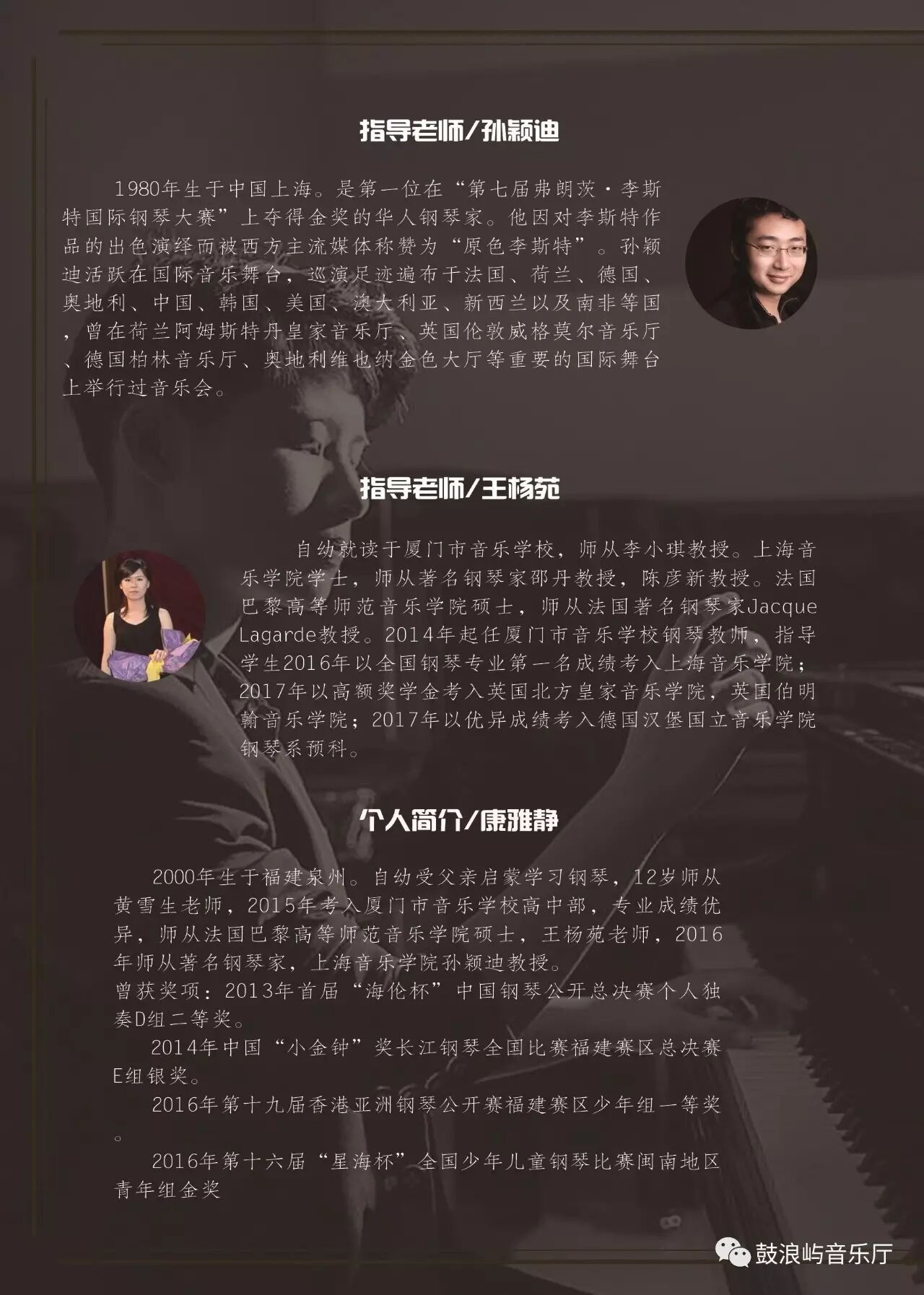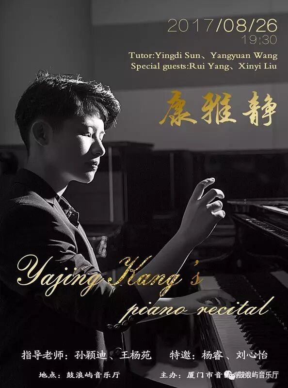 8月26日晚19:30《厦门市音乐学校2017“夏之梦”系列——康雅静钢琴独奏音乐会》(观众免费入场)
