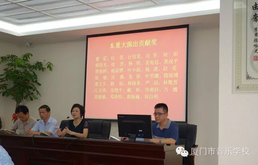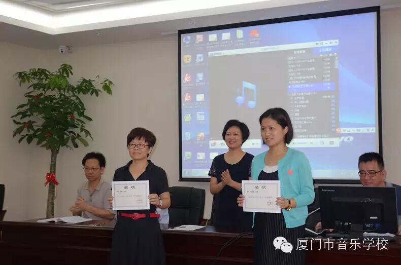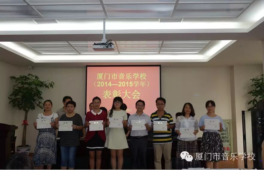 9月23日下午,在五通校区隆重地举行了厦门市音乐学校2014—2015学年表彰大会,郑金銮副校长宣读了表彰决定,谢校长、郑副校长、吴副校长为获奖老师颁发了奖状。谢慧校长最后讲话,祝贺获奖的老师,希望老师们不断提升自身的师德修养、专业素养、综合素质,追求身心的和谐健康,做幸福的“美丽教师”。