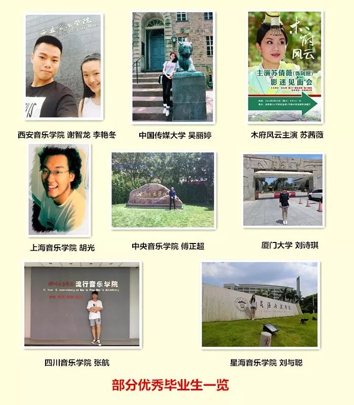 十年磨砺,十年积淀,厦门英才学校音乐专业课探索出一条有英才艺术教育特色之路,在音乐类艺术高考中取得骄人的成果。音乐高考本科上线率均为100%,为中央音乐学院、上海音乐学院、天津音乐学院、星海音乐学院、沈阳音乐学院等国内知名音乐院校输送了大批优秀毕业生。