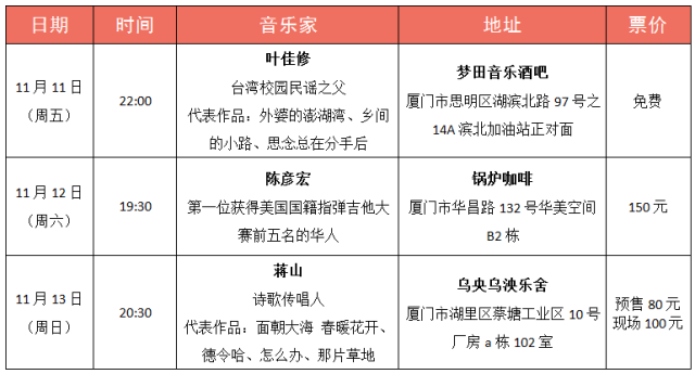在乐器展的各大分会场,组委会联合陈彦宏吉他教室、G牌吉他,邀请台湾校园民谣之父——叶佳修、“音乐诗人”蒋山,让你的耳朵怀孕~