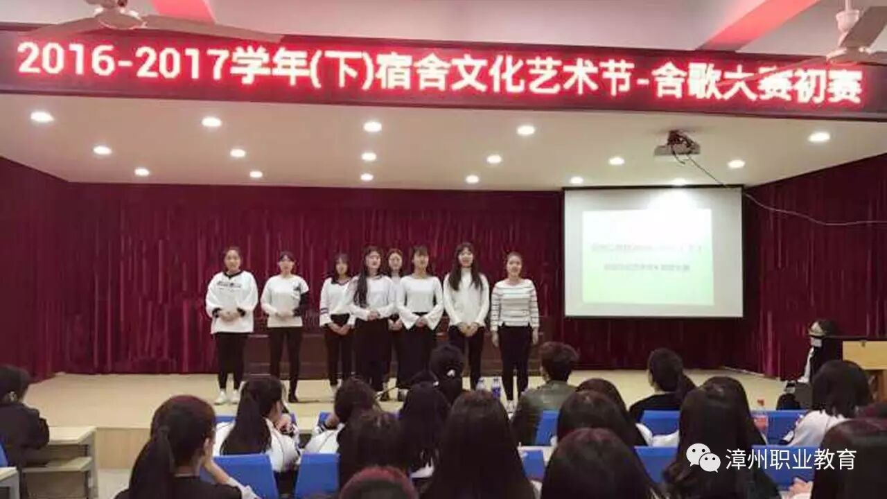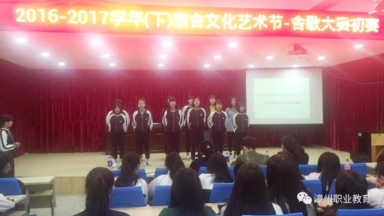 为丰富学生课余文化生活、提高学生的艺术素养,进一步增强学生的团结力、凝聚力及创造力,增强宿舍成员之间的友情,漳州二职校于3月28号晚开始了为期六天的宿舍文化节活动之舍歌大赛预赛。