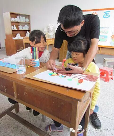 发哥也有深刻的体味,“看到穷乡僻壤的山城小孩子无邪的童真与欢颜,有些每天自己要步行来回两小时上学,······小孩嚷著:‘老师!我如果每周可以跟你学画画该多好?’。上课时的独立性与对纸张、颜料的珍惜”,种种对他来说很有感触。