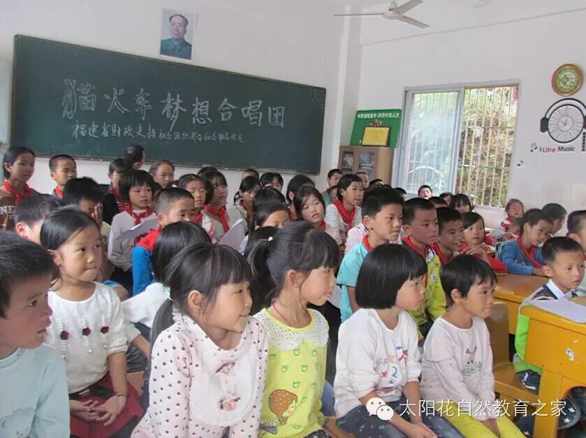 这次只向三马的孩子们教学《赶圩归来啊哩哩》(之前已学过《感》曲),由于学校没有琴,伟顺老师只能在黑板上写下歌词的连接词,一字一句地教学。(插个话:老师那两天身体不舒服,还吃着药带病上课,感恩!)孩子们人手一张刚打印出来的乐谱,睁着大眼睛顺着伟顺老师的手势和嘴型,一遍遍地练习着。最后带伴奏合唱的效果非常好,不信的话,10月31日晚来音乐会现场瞧瞧!