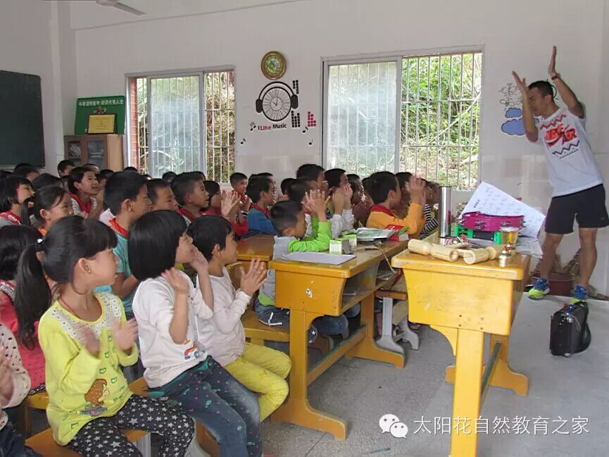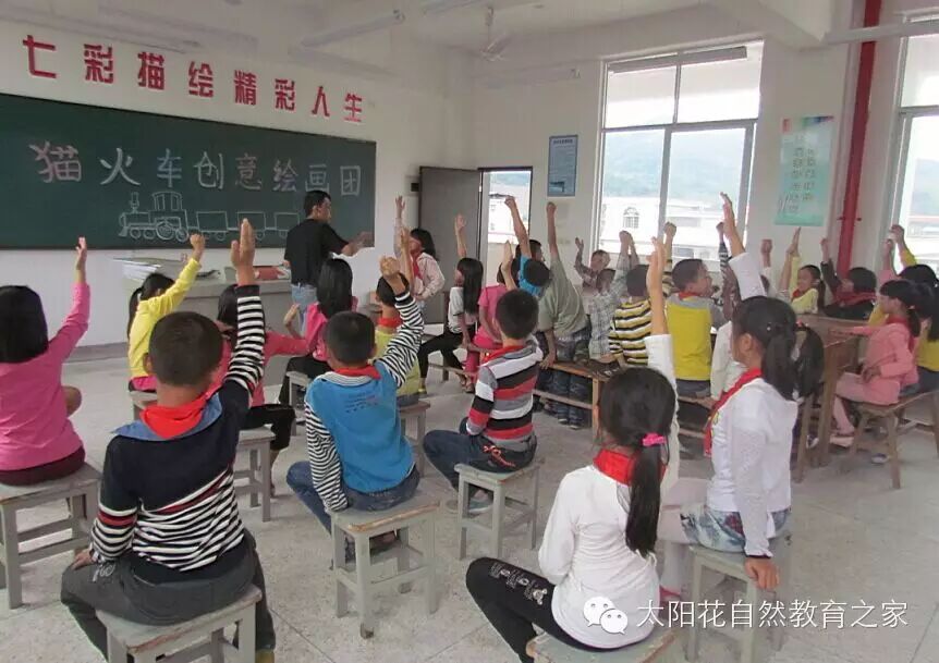 喜欢音乐的可以去找阳光帅气的伟顺老师,喜欢静静地画画去找严肃而又幽默的发哥老师,也有的孩子跟着老师去装点装饰教室。不同年级的孩子们互相呼唤而来,老师也默默地坐在教室后听讲,教室虽然很拥挤却很有温度。两个小时的教学分享很快就过去了,“猫火车创意绘画团”和“猫火车梦想合唱团”在首站的良好效果,让我们对隔天与老朋友(三马小学)叙旧更有信心了。