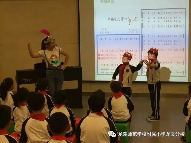 王琳老师执教的《幸福花儿开心上》,通过以“幸福生活”为话题让学生了解柯尔克孜族人民的幸福生活,激发学生的学习兴趣,以”打地鼠”找音符的游戏让学生充分学习音乐要素,熟悉二声部旋律合唱。