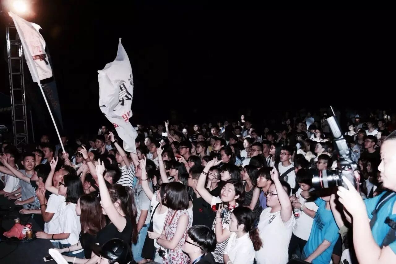 我在现场发现一个妹子,是门虫的小粉丝,从大学城坐一个半小时公交,七点到这儿,等了五个多小时,才等到他们唱歌。