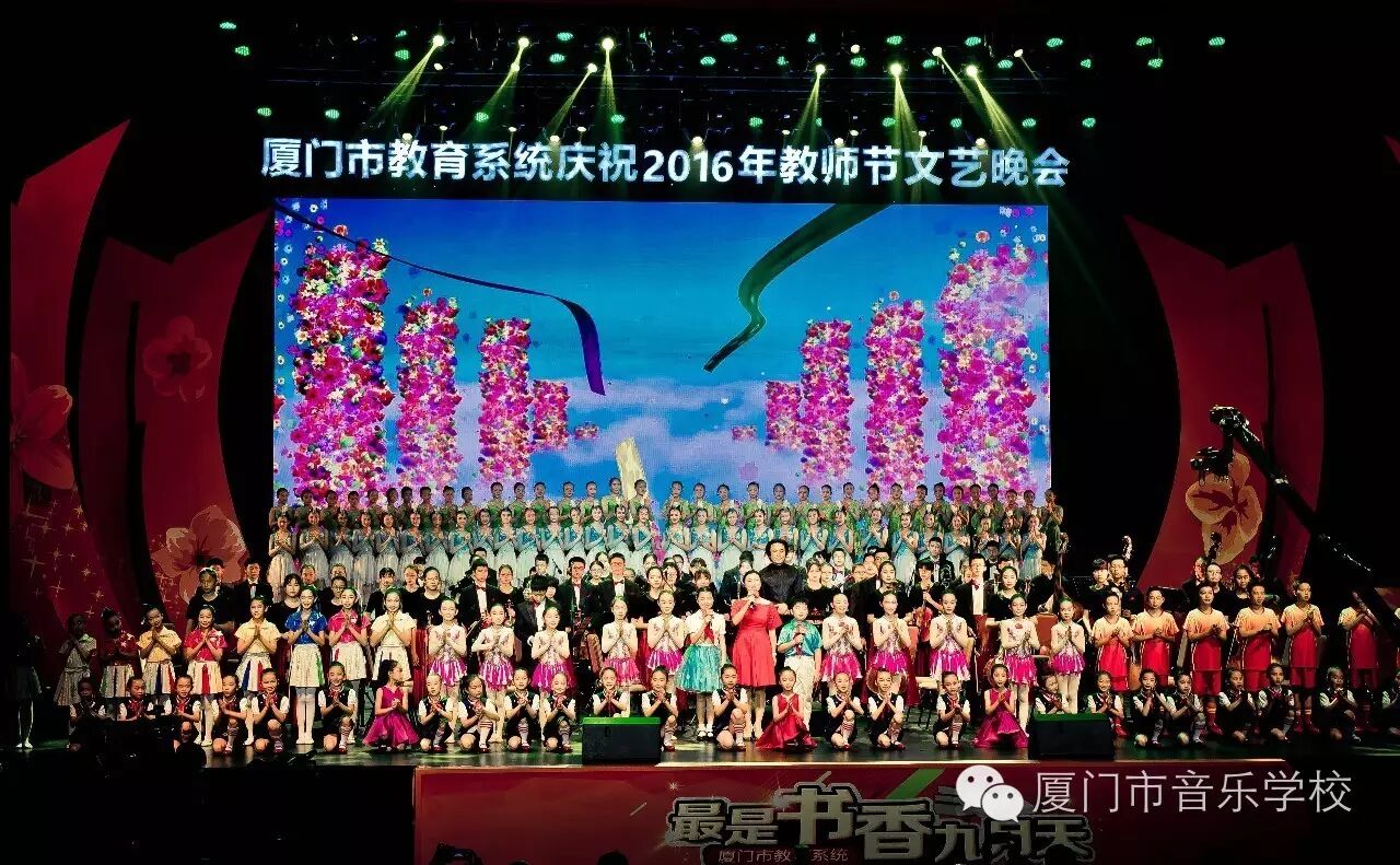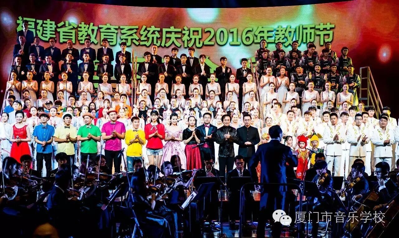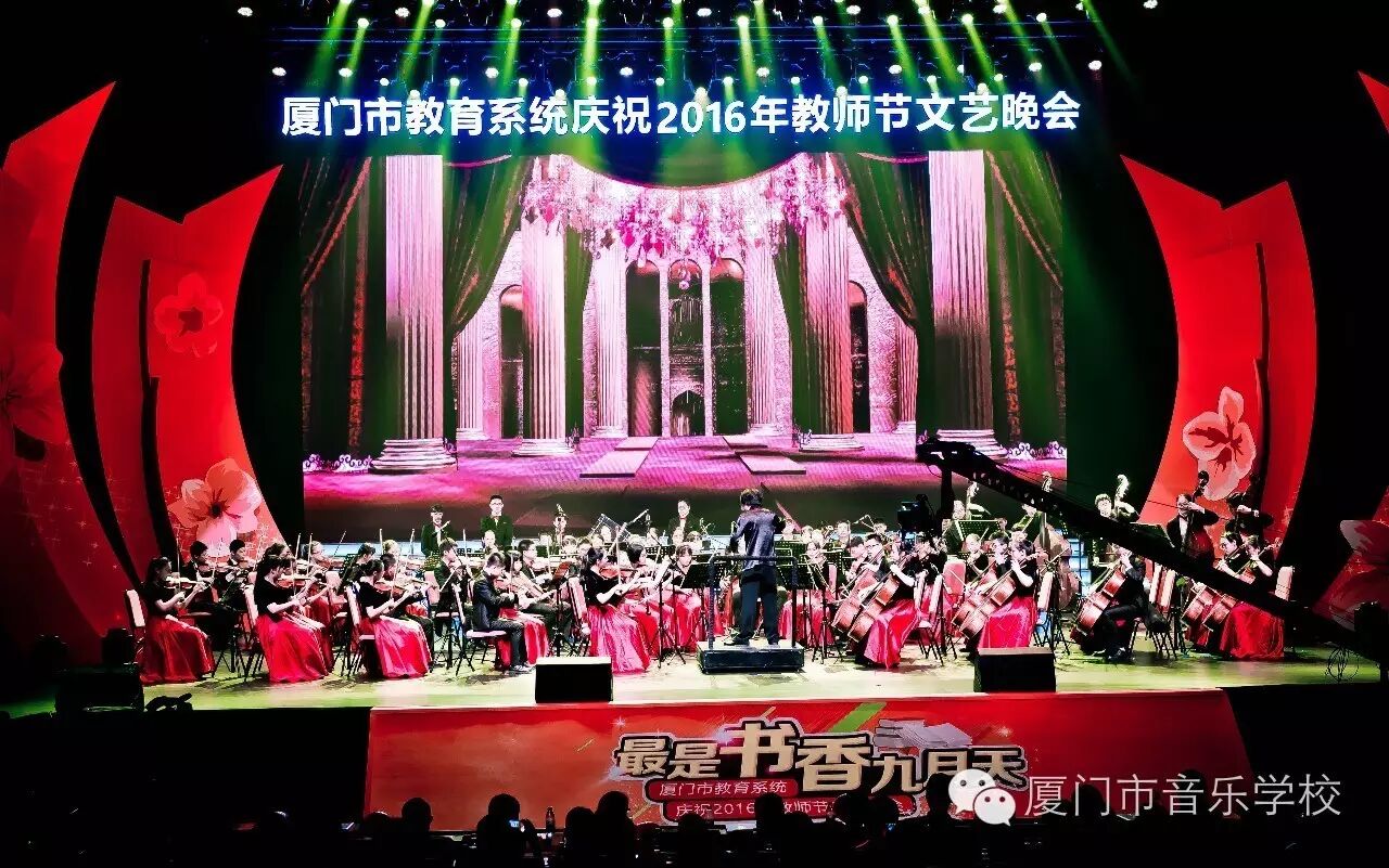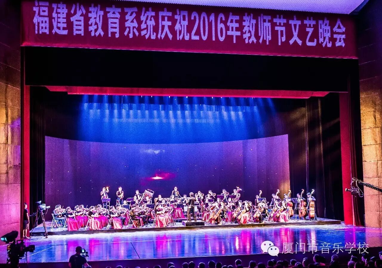 9月9日晚,。“最是书香九月天”——厦门市教育系统庆祝2016年教师节文艺晚会,隆重上演。4月荣获全国艺术展演一等奖并跻身全国四大学生交响管弦乐团——我校管弦乐团压轴演出,傅人长大师执棒。著名的“柴四”交响曲,响彻舞台内外,为大会画上了一个最绚丽的感叹号!