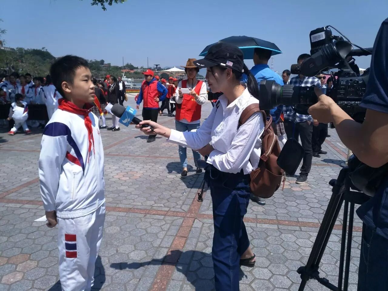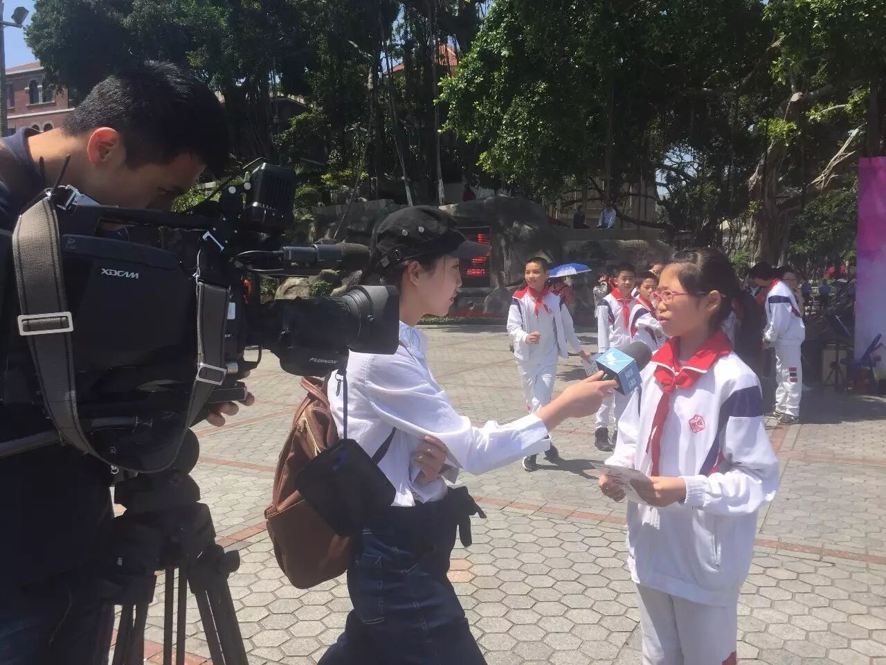 学生接受厦门电视台采访,介绍我校垃圾分类成果