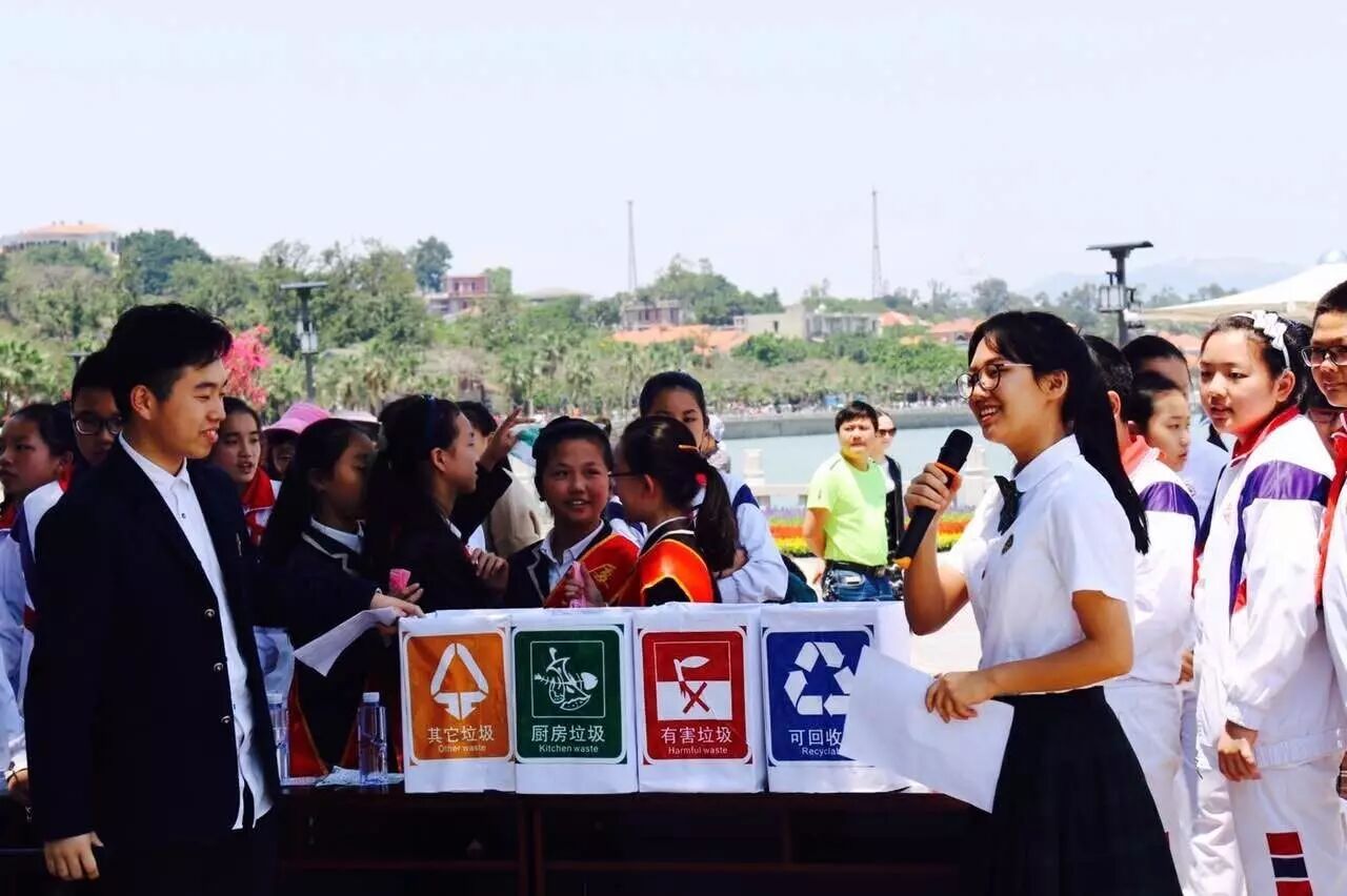 世界注目厦门,盛会花落鹭岛。我们的一言一行,代表学校,代表鼓浪屿,代表厦门,代表中国。办好金砖会晤,让我们携手共同参与到这场文明服务的活动中,增强环境保护意识,学会垃圾正确分类,为魅力鹭岛带来洁净,为绚丽生活增添色彩,提升厦门文明,彰显最美厦门!