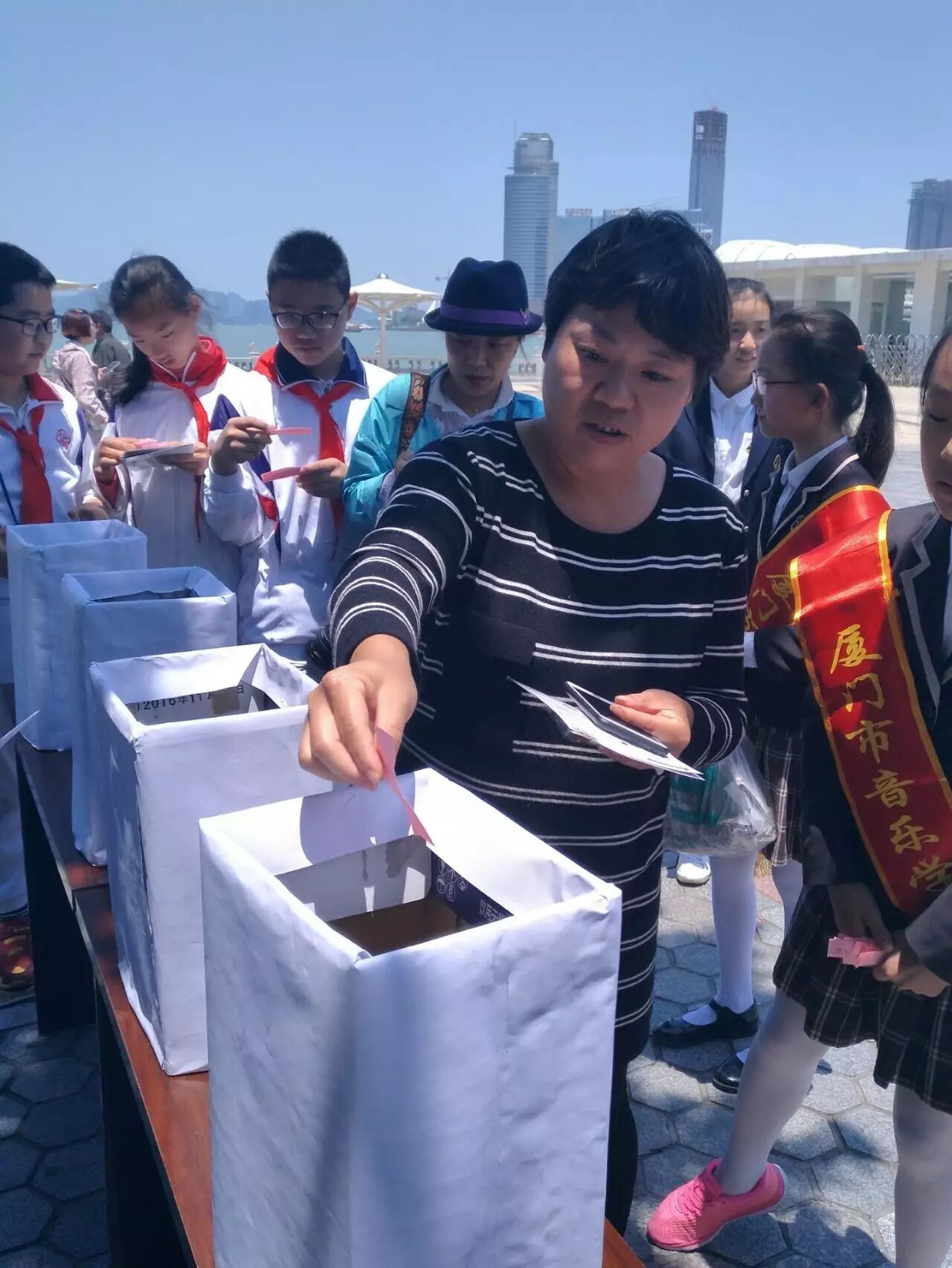 2017年4月28日,蓝天、阳光、钢琴码头,我校携手鼓浪屿管委会以及驻岛25个单位和部门300余名志愿者,开展了主题为“当好东道主,文明我先行”的景区志愿服务活动。